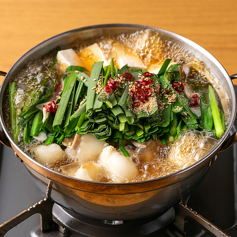 プリプリの牛もつ、地元で収穫された新鮮な野菜と、たっぷりのニラを組み合わせた、本格的なもつ鍋をご提供いたします☆もつの旨味と、野菜の甘みが絶妙に絡み合い、一口ごとに幸せを感じられる贅沢な一品です。〆には雑炊・うどん・ラーメンを追加でご注文可能です!最後までその美味しさを、たっぷりご堪能いただけます◎