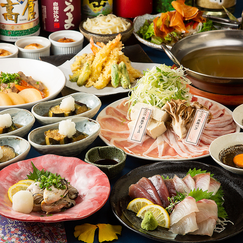 鹿児島の豊かな風土で育てられた素材を厳選して使用。全コース飲み放題付きで飲み会にもおすすめです!
