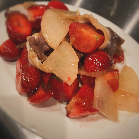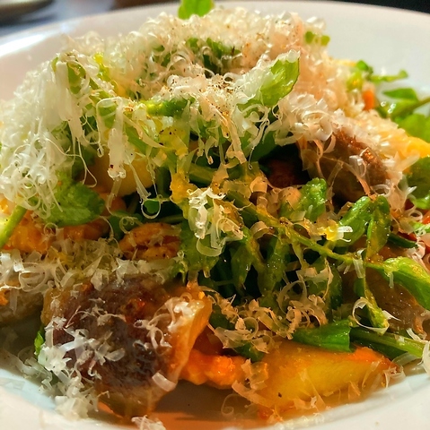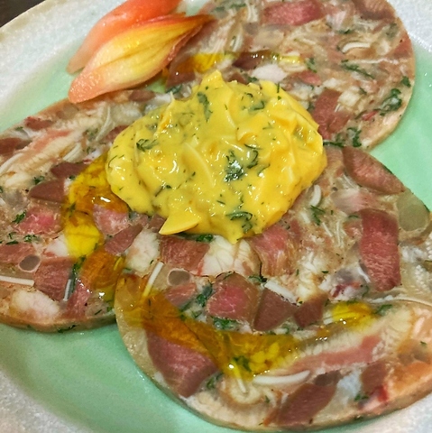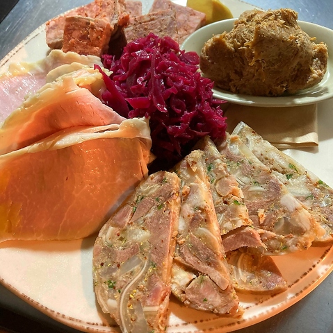 ワインとの相性抜群!ビストロ定番の肉料理は、長年試行錯誤を重ねたシャルキュトリーと、1週間ほどソースを煮込んだ「牛頬肉のシチュー」がおすすめです。旬の魚介や野菜、フルーツを使った一品にも工夫を凝らし、冷たい前菜から温かい前菜、おつまみまで、当店ならではの一皿をご提供します。