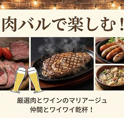 肉好き必見!「肉バルで食べ放題がお得!」厳選ステーキや肉寿司を、お腹いっぱい心ゆくまで楽しもう!