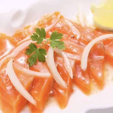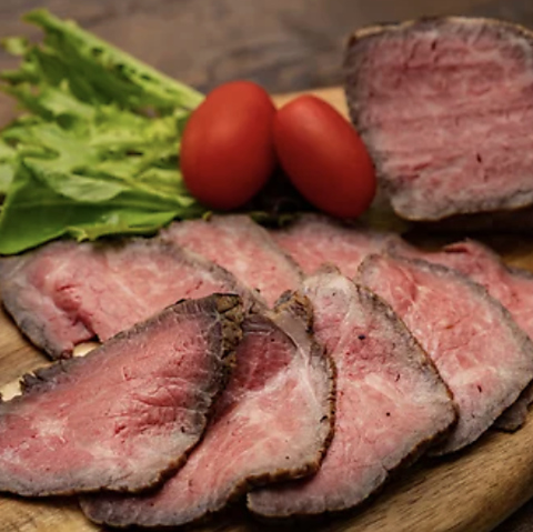 厳選した牛肉をじっくりと低温で焼き上げ、肉本来の旨味を凝縮させた自慢の逸品です。「しっとり柔らか、極上のローストビーフ!」の言葉通り、口の中でとろけるような食感と、噛むほどに溢れ出すジューシーな肉汁が堪能できます。特製ソースとの相性も抜群で、お酒のお供や特別な夜のメインにも最適な一皿です。