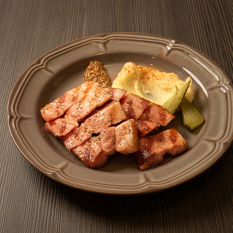豊川ベーコンのジューシーさを存分に楽しめる200gの厚切りベーコンは、外はカリッと香ばしく、中は肉汁が溢れ出す絶妙な焼き加減。ひと口噛むごとに、濃厚な旨味が広がります。ベーコンとマッシュポテトはボリューム感たっぷりでお酒との相性も抜群◎ビールやワイン、ウイスキーなど、どんな飲み物とも絶妙にマッチします。