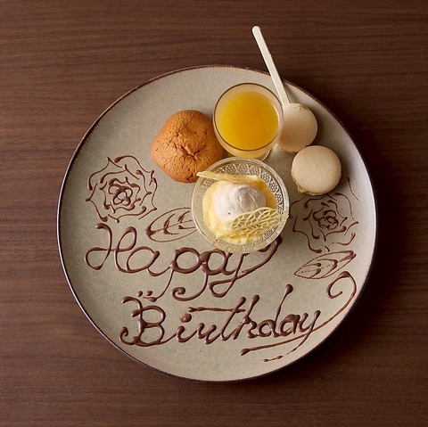 記念日や誕生日でのコースご予約のお客様にクーポンご利用でメッセージプレート無料でプレゼント 要予約