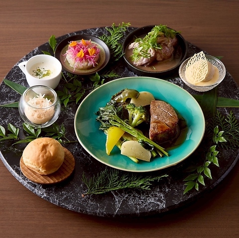 毎月変わるコース料理は、シェフが厳選した新鮮な野菜や素材を生かしたコースをお楽しみいただけます。
