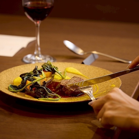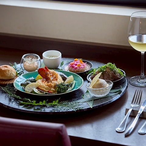 伝統的なフレンチを楽しめるディナーコースは、ワインとのペアリングがおすすめ。毎月異なるメニューを取り揃え、こだわりのフランス産ワインと相性ぴったりです。記念日やお祝い事にも◎クラシックなフレンチコースを大切な方とぜひ。