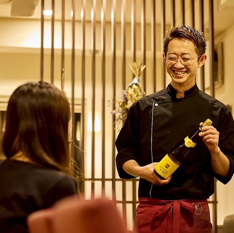 コースの料理に合わせて希望があれば、シェフ自らワインのペアリングもいたします。ぜひワインと料理もお楽しみください。、