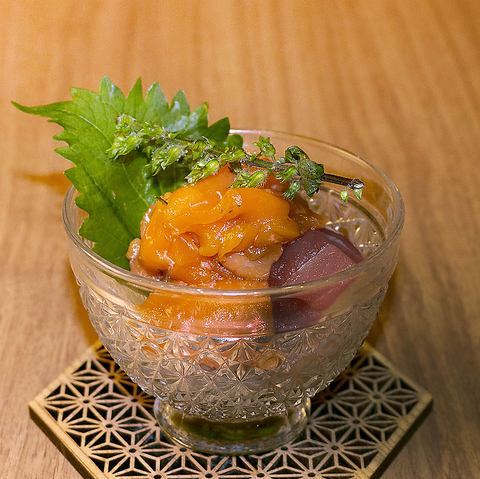 ねぎとろユッケ 走水の海苔添え