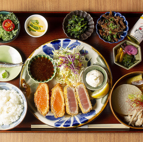 -横浜中央卸売市場直送-サーモンとキハダマグロのレアカツ御膳
