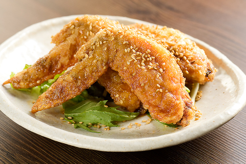 試行錯誤を繰り返し完成した、秘伝のタレに絡めて食す 外はカリッと中はジュワーッ 絶妙な食感が病みつきになります。