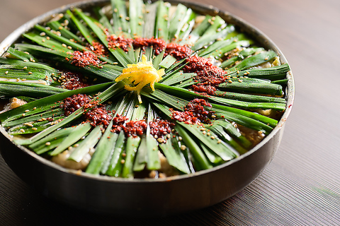博多名物のもつ鍋を地元・静岡産の食材を使用し、当店ならではのオリジナルもつ鍋を提供!甘い脂がジューシーなもつはプリプリで歯ごたえも抜群。牛もつの旨味が溶け込んだスープに地元産の野菜をたっぷり絡めて召し上がれ♪さまざまな食材の旨味がぎゅっと詰まった鍋は〆まで存分に楽しめます。