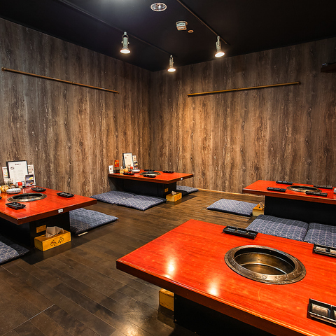【カジュアルに焼肉を。】当店は仕切りが全くないアットホームな空間を皆様へご提供しています。やんわりとした照明の中リラックスしてお食事をお楽しみください♪香ばしい匂いの漂う店内で幸せな時間をご堪能下さい♪