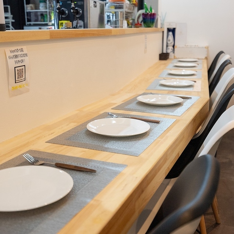 調理風景を見たり香りを楽しんだりしながらお食事ができるカウンターのお席は、お一人様でのご利用はもちろん、デートにもオススメです。ぜひお気軽にお立ち寄りください♪