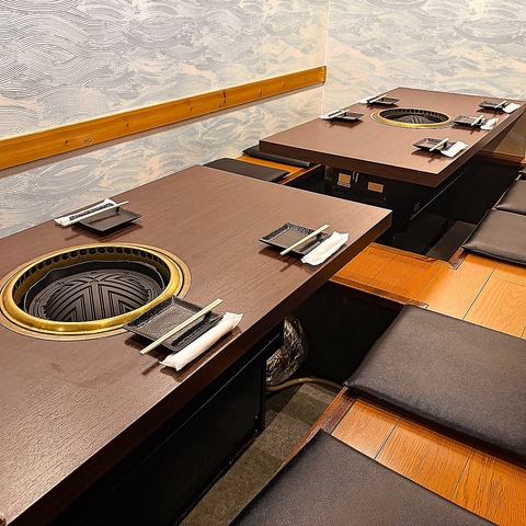 掘りごたつ式のテーブルで、靴を脱いでリラックス。お子さま連れやご年配の方も安心してお食事いただけます。心地よい空間で、香ばしいジンギスカンをどうぞ。