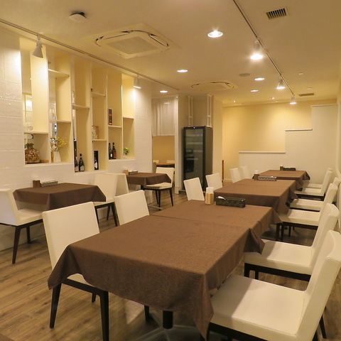 白を基調としたシンプルで清潔感のある広々とした店内は、訪れる人々に心地よい安らぎを提供します。洗練されたデザインが心地よい空間を作っています。明るく広々とした空間で、落ち着いた雰囲気の中、リラックスしながらお食事をお楽しみいただけます。友人や家族との大切なひとときをお過ごしになるのも◎