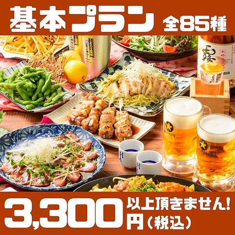 お会計3,300円でとことん楽しめる食べ飲み放題プラン♪プラスでさらに充実できるプレミアムプランも♪