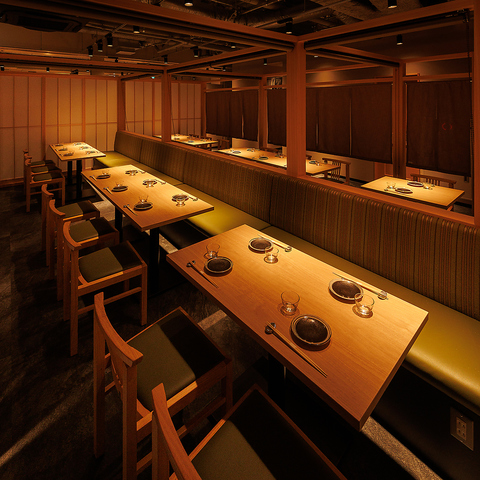 70席を完備。全席禁煙で和のテイストを大切にした大人の空間。ひとりでも仲間内でも、周囲の目を気にせずワイワイ美味しいお酒を楽しめること間違えなし◎