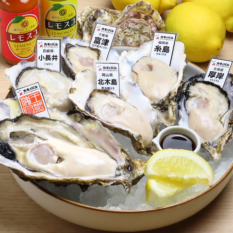 季節ごと旬の生牡蠣を全国各地から仕入れ!色々な産地を楽しめる、盛り合わせプレートがおすすめ!