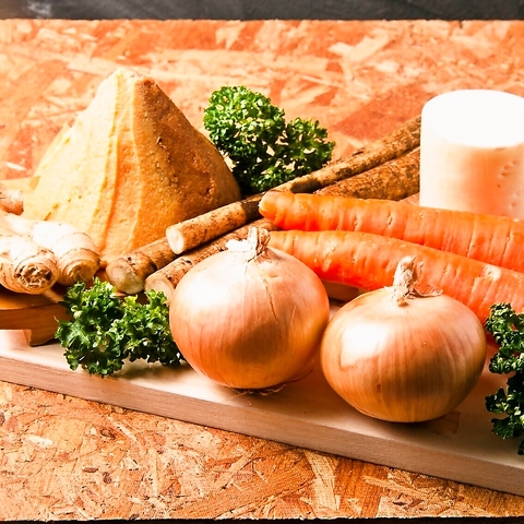 大分・竹田産の銘柄豚「奥豊後豚」をはじめ、地元野菜や鮮魚を積極使用。