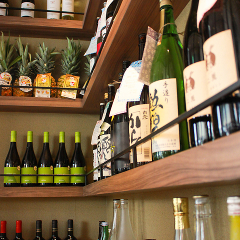 入り口の日本酒&ワインセラーには、種類豊富に珍しいお酒もご用意。料理との意外な組み合わせを発見ください。