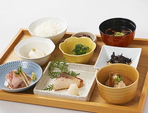 ・銀鱈の西京焼き ・おばんざい三種 ・白飯 ・赤だし ・お漬物