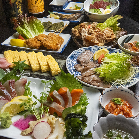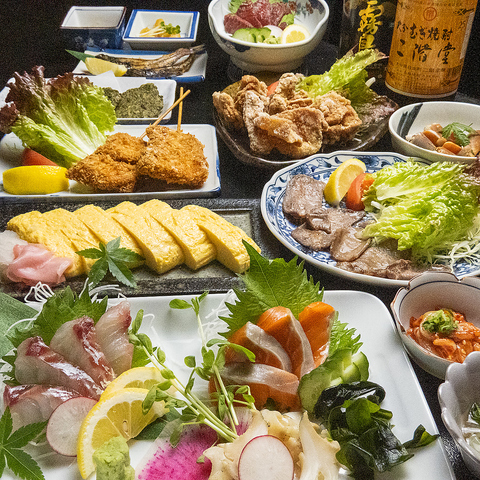 当店自慢の絶品料理を堪能いただけるボリューム満点なコースを各種ご用意♪2.5時間飲み放題付なので歓送迎会にもぴったり◎個室は人数に応じてご用意しております!是非ご予約ください☆※当日の入荷状況により内容に変更がある場合がございます※画像は一例