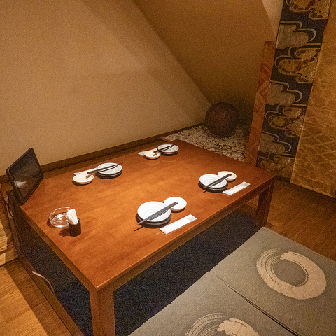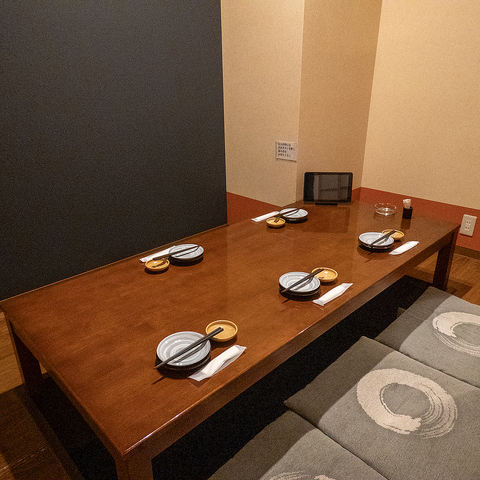 6名様までご利用いただける掘りごたつのお席をご用意しております。ゆったりとした空間で、友人や家族との大切なひとときをお過ごしいただけます。靴を脱いでくつろげるため、リラックスした雰囲気の中でお食事を楽しめます。少人数の集まりから大人数の宴会まで、幅広く対応可能となっております。