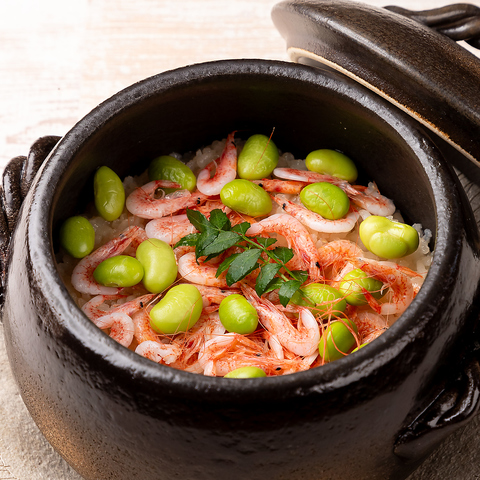 ふっくらツヤツヤでお米の旨みを感じられる、厳選米を使用した釜炊きご飯は季節によって内容が変わります◎