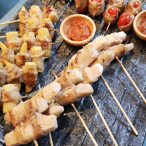新鮮野菜をジューシーなお肉で巻いた、自慢のヘルシー串!女性にも人気◎新年会ご予約はお早めに!!