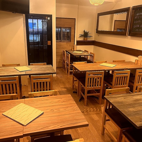 温かみのある木目調のインテリアが広がる落ち着いた店内。自然のぬくもりを感じられる空間は、ゆったりとくつろげる雰囲気です。友人やご家族とのお食事、デートや仕事帰りの一杯にもぴったり。居心地の良さを追求した空間で、心地よいひとときをお過ごしください。
