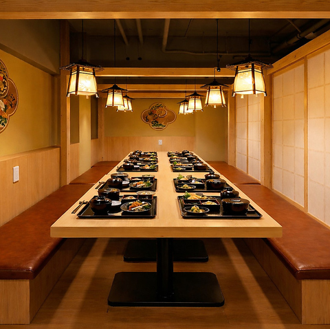 | 個室 | 6名様×4 | 【9~20名 横並び◎】浅草での中規模な宴会に最適な、広々とした和モダン空間をご用意。9名様から最大20名様まで横並びでご利用いただけ、一体感のある特別なひとときをお過ごしいただけます。周囲を気にせず、プライベートな時間を。落ち着いた照明が灯る粋な空間で、厳選された逸品を存分に堪能いただけます。 |