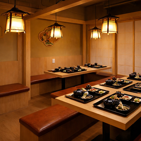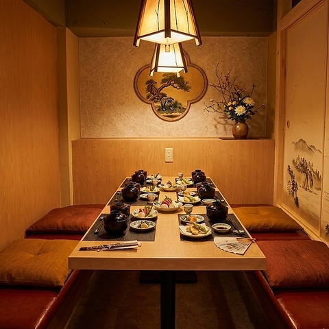 | 個室 | 6名様×4 | 【2~10名 1部屋◎】浅草での少人数宴会や会食に最適な、広々とした和モダン空間をご用意。2名様から最大10名様まで1部屋でのご利用が可能で、プライベート感溢れる特別なひとときを。周囲を気にせず、落ち着いた照明が灯る粋な空間で、厳選されたこだわりの逸品を存分に堪能いただけます。 |