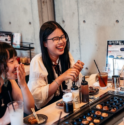 オーダーしたたこ焼きを「自分で焼いて食べる」スタイルは、おひとり様はもちろん、カップルやご友人同士、宴会と幅広いシーンで楽しめる要素が盛り沢山♪美味しいと楽しいを心ゆくまでご提供いたします!