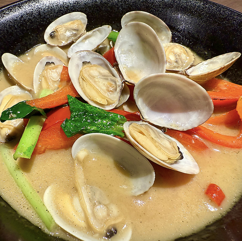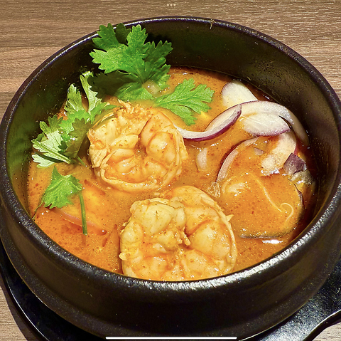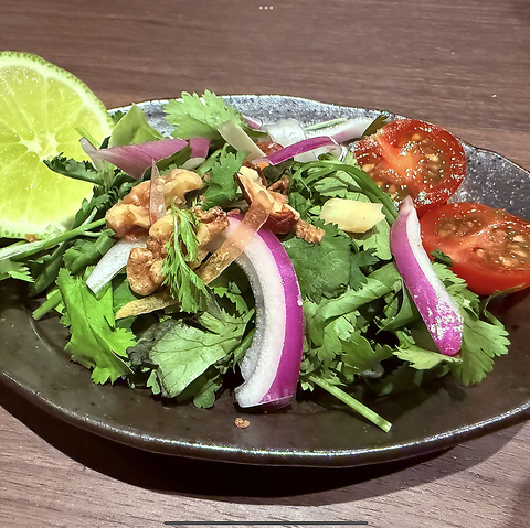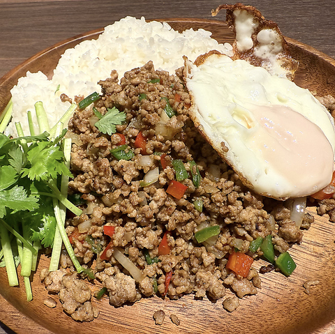 強火でサクッと仕上げるエスニックガーリックシュリンプは、まさに絶品の一品です。ぷりぷりのエビが香ばしいガーリックの風味に包まれ、食欲をそそります。生ビールとの相性も抜群です♪さらに、特製のナムチムソースやパクチーソースを使えば、味の変化を楽しむことができ、飽きることなく最後まで美味しくいただけます!