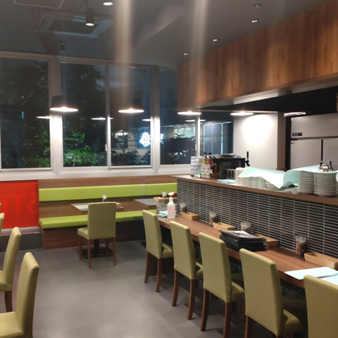 客席へのご案内 他グループとの相席禁止 テーブル/カウンターサービス モバイルオーダーによる注文 |