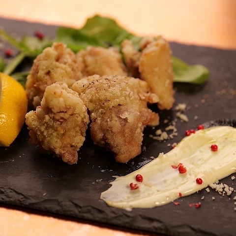 バジルが香るジューシーな唐揚げ。カラッと揚げた、鶏の美味しさを感じられる一品です。お好みでレモンを絞って、またソースを絡めてお召し上がりください♪