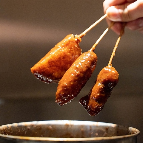 串カツに味噌をつけた料理です◎味噌ダレは2種類の味噌をブレンドしていて、やや甘めでしつこさはなく、飽きることなく何本でも食べられます!お酒も何杯でも飲めます!種類は豚、鶏、ウインナー、茄子、玉ねぎ!お得な5種盛もご用意してます♪学校終わりに仕事終わりにふたご家でどてかつをお楽しみ下さい◎
