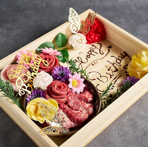 サプライズ演出にも最適な焼肉心時代。誕生日・記念日には特製の肉ケーキをご用意しております。大切な人へのお祝いには、特別な一日を全力でお手伝い致します!大切な方とのお食事にも、ぜひご利用ください♪事前にご予約頂ければ臨機応変にご対応できますのでお気軽にお問合せ下さい。※肉ケーキは3人前から承っております。