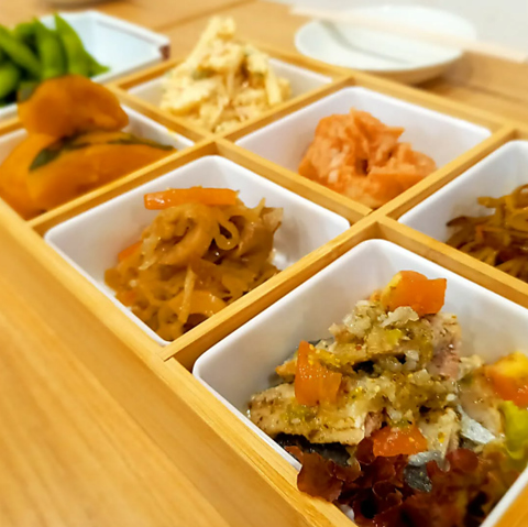 当店の手作りでその日のオススメ小鉢5種になります!立ち飲みでも席飲みでもお酒のおつまみにピッタリです!