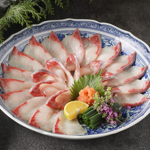 とろける脂の寒ブリを黄金出汁にさっと潜らせて。溢れる甘みと旬の旨味を、特製ポン酢でさっぱりとどうぞ