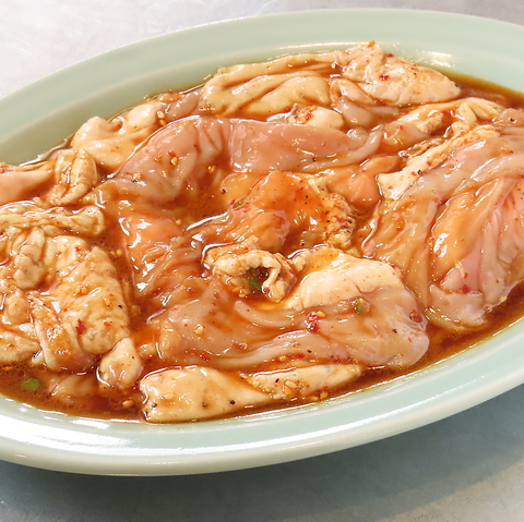 当店のホルモン(しろ)はしろ一頭といって(小腸・大腸・ガツ・テッポウ)豚一頭分の白色の部位群を毎日、仕入れております。生で仕入れたしろ一頭は下処理からカッティング、味付け直前まで一貫した低温管理を行っております。本当の美味しさを体感して下さい。