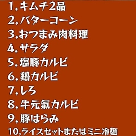 お肉全5種類・おつまみ&〆5種類の計10品ついて4000円のお得なコースとなっています!生ビール・ハイボール・サワー・焼酎・日本酒等々、飲み放題も含まれています!