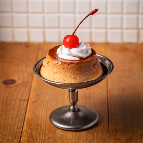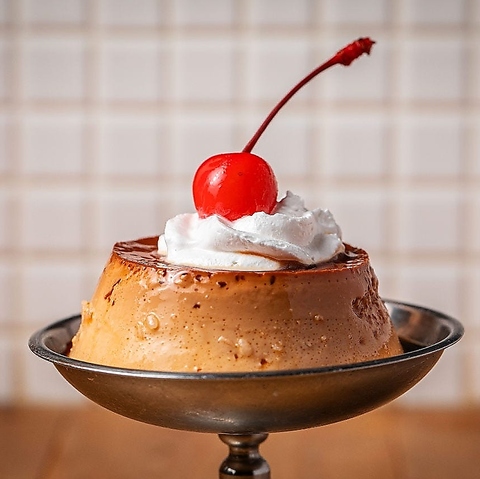 おしゃれな空間の〆には、レトロ可愛い「カタナのプリン」を。銀の器にのった姿は写真映えも抜群です。濃厚な卵の風味を感じる固めの食感と、ほろ苦い自家製カラメルが絶妙。甘すぎない大人の味わいは、女子はもちろん男子にも嬉しい美味しさ。食後の別腹スイーツにぜひどうぞ。