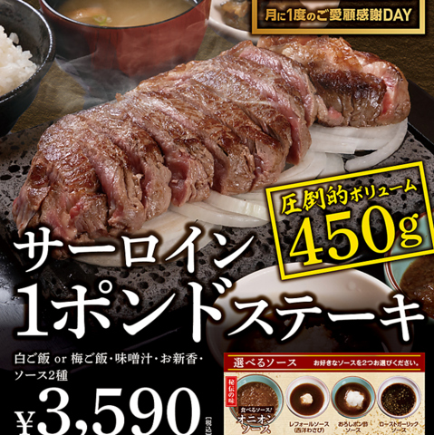 月に1度のご愛顧感謝DAY!450gと圧倒的ボリュームなのでお腹いっぱいにお肉を食べたい人にピッタリです♪