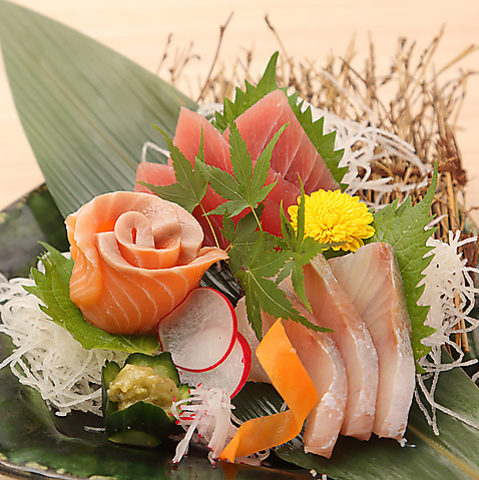 季節で内容が変わる単品のお刺身です。本日の鮮魚はお尋ねください。※写真は一例です。