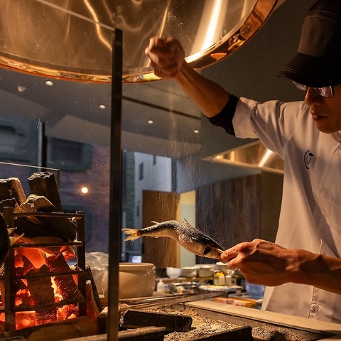 店内の中心には存在感あるインパクト抜群な炉が。遠火でじっくりと焼き上げられる魚を見ながら落ち着いた雰囲気で美味しいお料理とお酒をお楽しみいただけます。