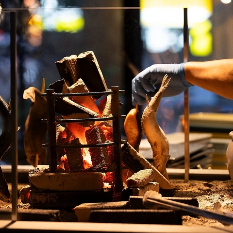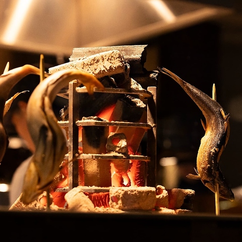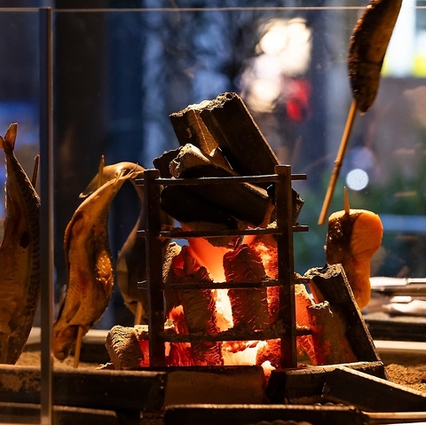 全国各地より仕入れた旨い魚を囲炉裏でじっくりと焼き上げる原始焼きは素材本来の旨味を引き立てます。