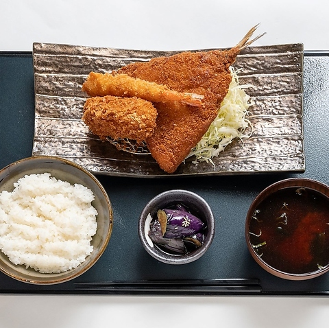 「特大アジフライ定食」は鮮度抜群なアジフライを贅沢にフライにしました。サクサクの衣で包まれたアジフライは、外はカリッと、中はふんわりとした身の旨みが楽しめます。揚げたてですので香ばしい香りが食欲をそそります。ボリューム満点で満足感が高い定食を、ぜひ一度ご賞味ください。