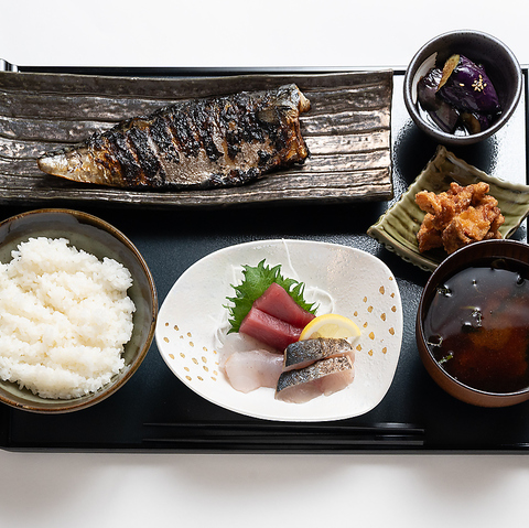 「うおまるい定食」は、日替わりで料理が楽しめる贅沢な定食です。限定10食の特別な定食なので早めのご注文をおすすめします。定食は、色とりどりの小鉢に盛り付けられたお刺身や煮物、揚げ物、そして季節の野菜がバランスよく配置され視覚でも楽しませてくれる定食になってます。