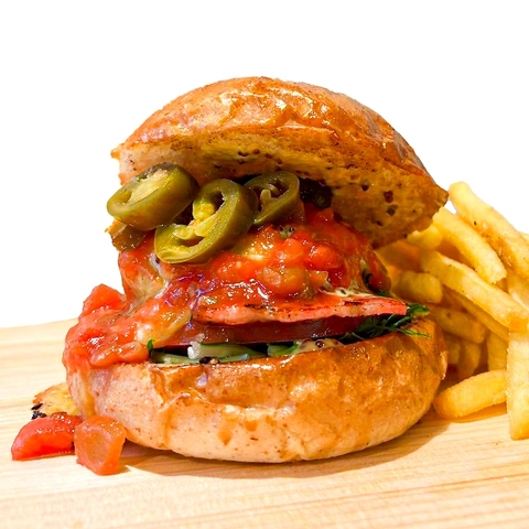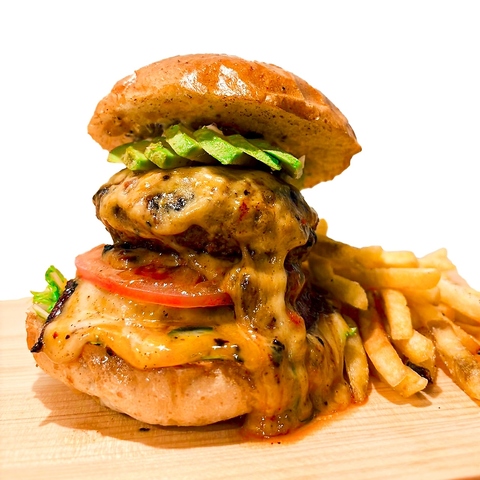 バーガーに使用しているこだわりのパティは、食べた瞬間肉の香ばしさとジューシーさが広がる極上のパティです!追加トッピングも可能ですので存分にご堪能下さい♪