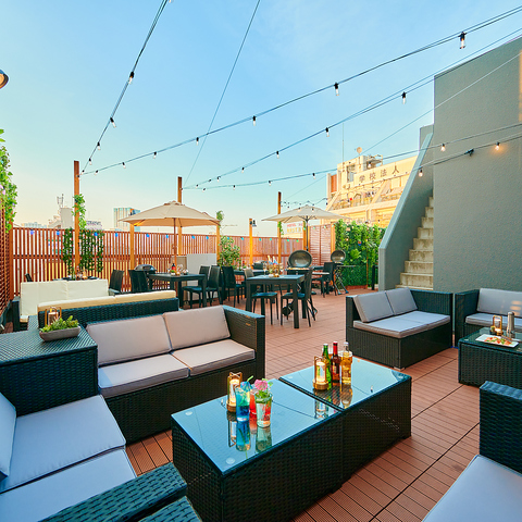 新宿の屋上に広がる当店は、リゾート感あふれるラグジュアリーなテラス空間。心地よいBGMと開放的な雰囲気の中、手ぶらで楽しめる本格BBQが魅力です。女子会やデートに最適な都会の隠れ家で、特別なひとときをお過ごしください。